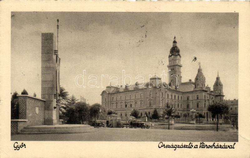 Győr, Országzászló, Városháza, automobile (EK) https://www.darabanth.com/de/239-Fernauktion/239.0/Ansichtskarten/Ungarn~12/Gyor-Orszagzaszlo-Varoshaza-automobile-EK~II1111785