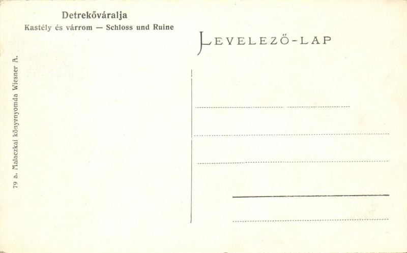 Detrekőváralja, Kastély és várrom, Schloss und Ruine; Malaczkai könyvn... https://www.darabanth.com/de/24-Gross-Auktion/24.1/Ansichtskarten-Ungarn/Slowakei~9441/Detrekovaralja-Kastely-es-varrom-Schloss-und-Ruine-Malaczkai-konyvnyomda-Wiesner-A-castl~II1290100