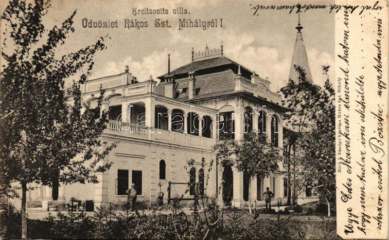 Budapest XVI. Rákosszentmihály, Kreitsovits-villa; Róth I. Sándor kiad... https://www.darabanth.com/de/24-Gross-Auktion/24.1/Ansichtskarten-Ungarn/Ungarn~9439/Budapest-XVI-Rakosszentmihaly-Kreitsovits-villa-Roth-I-Sandor-kiadasa~II1290720