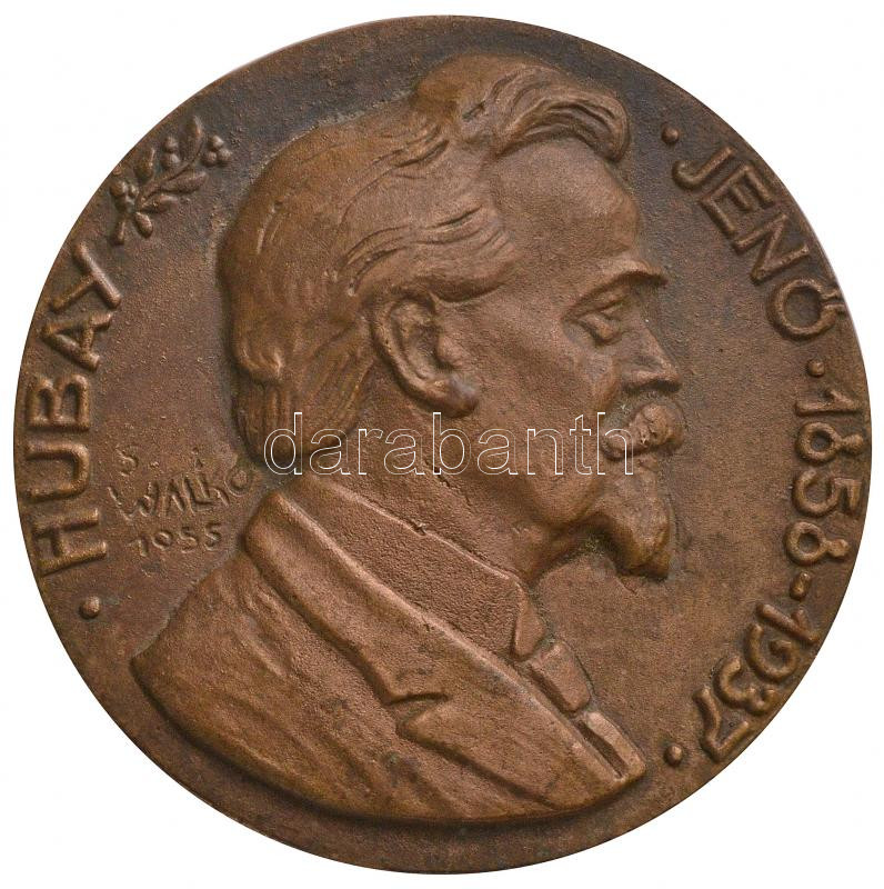 Solymári Valkó László (1909-1984) 1955. "Hubay Jenő 1858-1937" egyoldalas Br érem (90mm) T:2 Hungary 1955. "Jenő Hubay" one-sided Br medallion. Sign.: László Solymári Valkó (90mm) C:XF