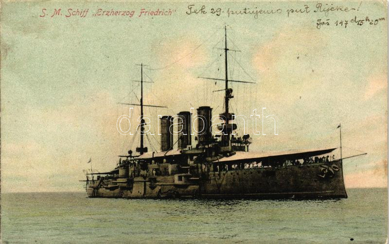 1908 SM Schiff Erzherzog Friedrich; G. Costalunga, Pola https://www.darabanth.com/de/24-Gross-Auktion/24.1/Thematik-und-Kunstlerkarten/Kriegsschiffe~9477/1908-SM-Schiff-Erzherzog-Friedrich-G-Costalunga-Pola~II1087325