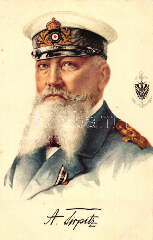 Grossadmiral von Tirpitz, Hermann Schött No. 8159. / German Admiral https://www.darabanth.com/de/24-Gross-Auktion/24.1/Thematik-und-Kunstlerkarten/Kriegsschiffe~9477/Grossadmiral-von-Tirpitz-Hermann-Schott-No-8159-German-Admiral~II1291212