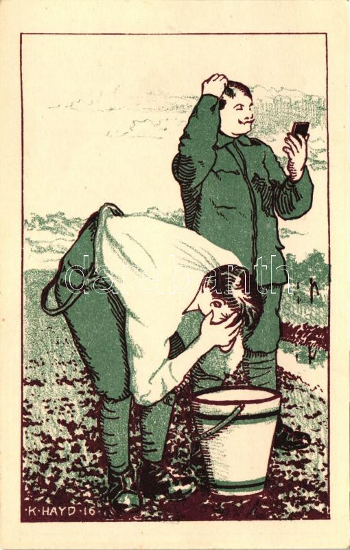 Beschreibung: Am Morgen; Kriegshilfkarte des K.u.K. Feldverlages, Feldpost 512 Aus dem Leben im Felde Serie III. Nr, 17 / Austro-Hungarian soldiers S: K. Hayd