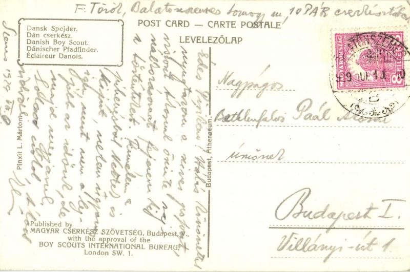 Dán cserkész, 'Magyar Cserkészszövetség kiadása' / Danish scout s: Már... https://www.darabanth.com/de/24-Gross-Auktion/24.1/Thematik-und-Kunstlerkarten/Pfadfinder~9452/Dan-cserkesz-Magyar-Cserkeszszovetseg-kiadasa-Danish-scout-s-Marton-L~II1286005