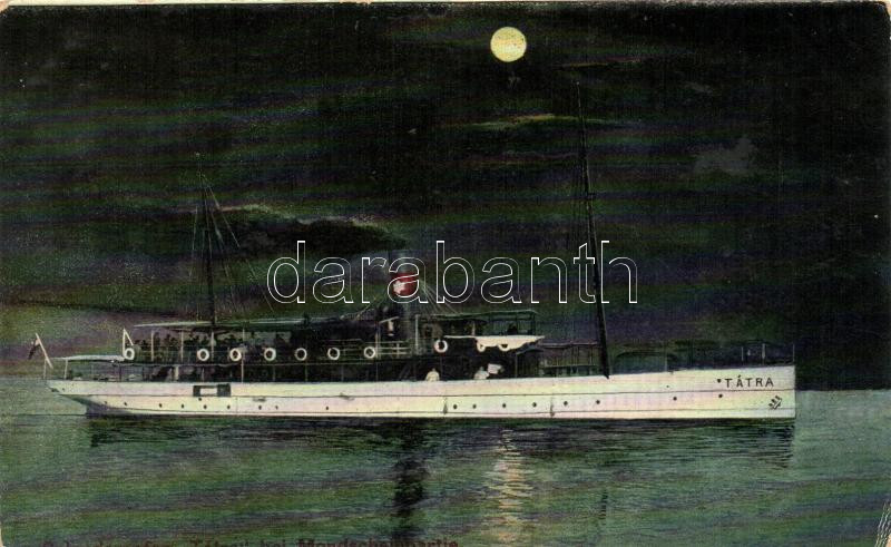 Salondampfer Tátra kirándulóhajó / Hungarian cruise ship at night https://www.darabanth.com/de/24-Gross-Auktion/24.1/Thematik-und-Kunstlerkarten/Schiffe~9481/Salondampfer-Tatra-kirandulohajo-Hungarian-cruise-ship-at-night~II1288758