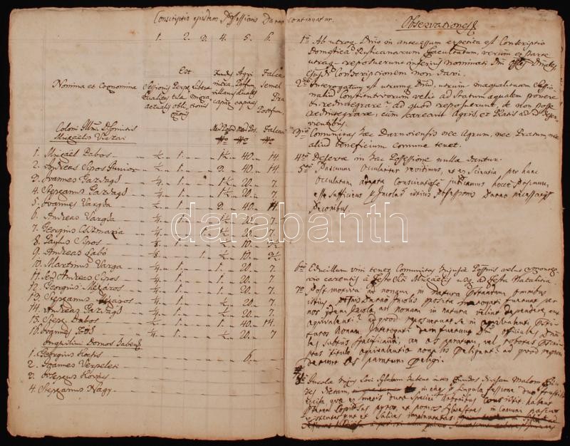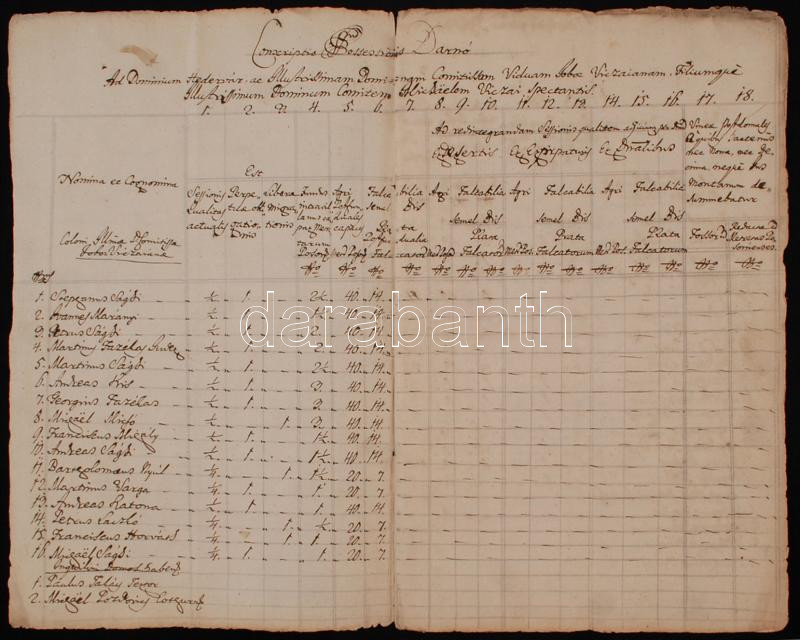 1768 Darnó (ma: Darnózseli) birtok összeírása a jobbágyok névsorával valamint további megjegyzésekkel, latin nyelven, két rányomott viasz gyűrűspecséttel, Kulcsár Pál Pozsony vármegyei esküdt aláírásával