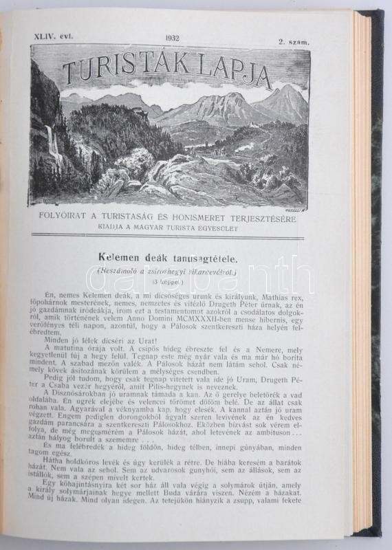 1931-32 Turisták Lapja Folyóirat. A turistaság és honismeret terjesztése. XLIII-XLIV. évfolyam. Szerkesztette: dr. Peitler Gyula. Sok képpel. Budapest, "Élet" Irodalmi és Nyomda Részvénytársaság. 18 szám félvászon kötésben egybekötve.