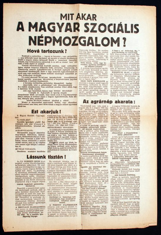 cca 1940 Mit akar a Magyar Szociális Népmozgalom? Nemzet Szocialista p... https://www.darabanth.com/de/240-Fernauktion/240.0/Andere-Sammelgebiete/Drucksachen~20005/cca-1940-Mit-akar-a-Magyar-Szocialis-Nepmozgalom-Nemzet-Szocialista-plakat-470x320mm~II1018776