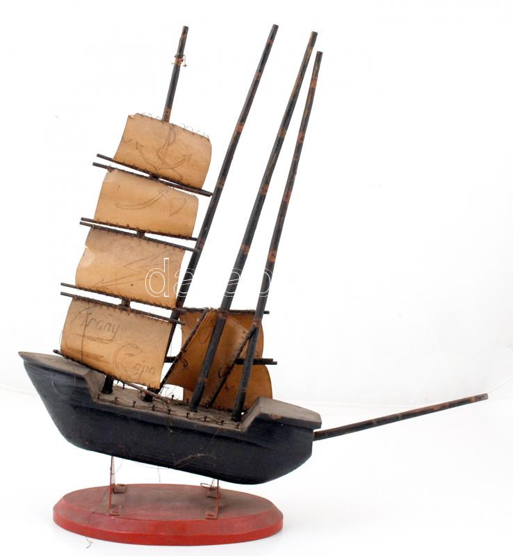 Fából készült, dekoratív hajómakett ("Arany Cápa"), sérült, m: 50,5 cm https://www.darabanth.com/de/240-Fernauktion/240.0/Andere-Sammelgebiete/Flohmarkt~20017/Fabol-keszult-dekorativ-hajomakett-Arany-Capa-serult-m-50-5-cm~II1096530