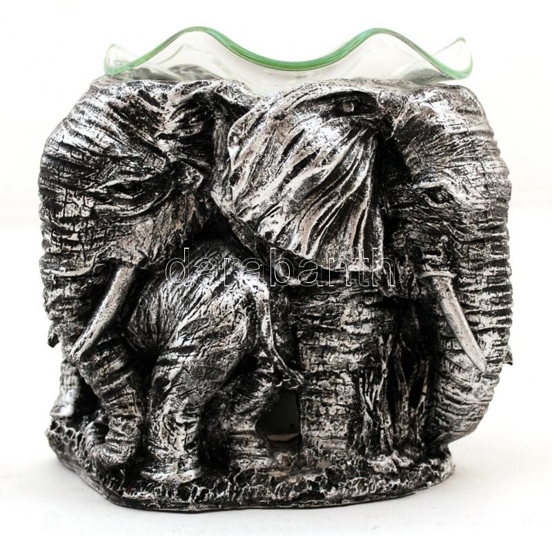 Beschreibung: Műanyag elefántfejekkel díszített párologtató, üveg rátéttel, m: 13,5 cm