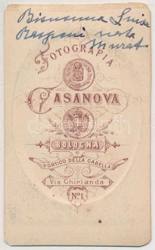 Beschreibung: cca 1880 Korabeli keményhátú kabinet fotó Casanova bolognai műterméből, 10,5x6cm