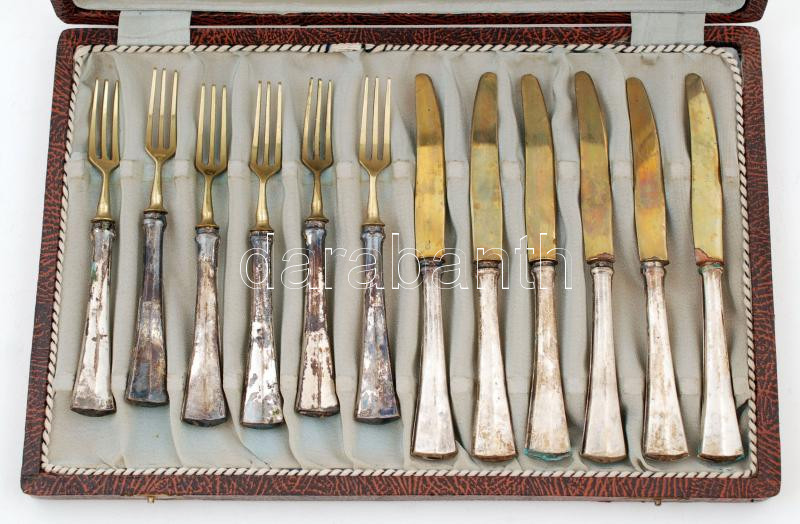 6 személyes ezüstnyelű (Ag) desszertes étkészlet, jelzett, br: 254 g https://www.darabanth.com/de/240-Fernauktion/240.0/Andere-Sammelgebiete/Juwelen~30026/6-szemelyes-ezustnyelu-Ag-desszertes-etkeszlet-jelzett-br-254-g~II1044828