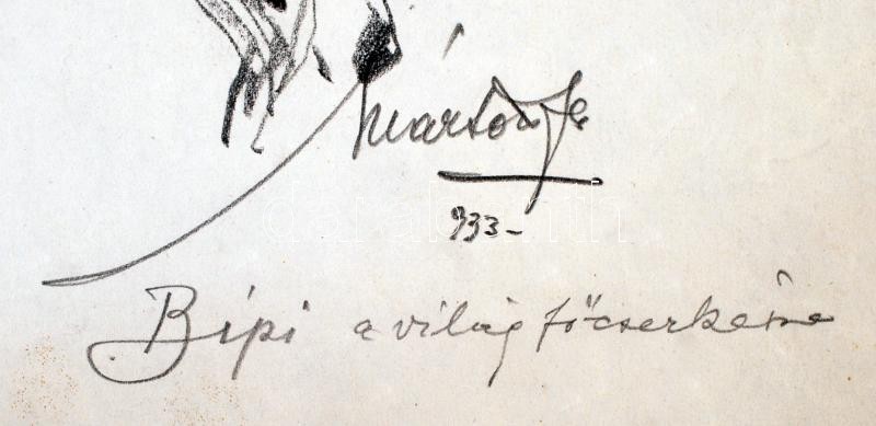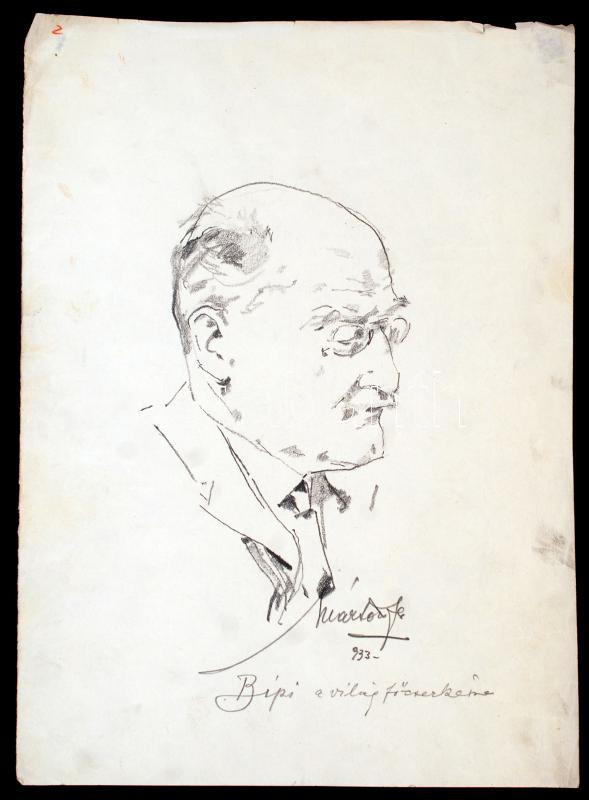 Beschreibung: Márton Ferenc (1884-1940): Bipi (Robert Baden-Powell 1857-1941) a világ fÅ‘cserkésze. Ceruza, papÃr, jelzett, apró gyűrÅ‘désekkel, 21×15 cm. A rajz az 1933-mas 4. Cserkész Világdzsemborin készülhetett.