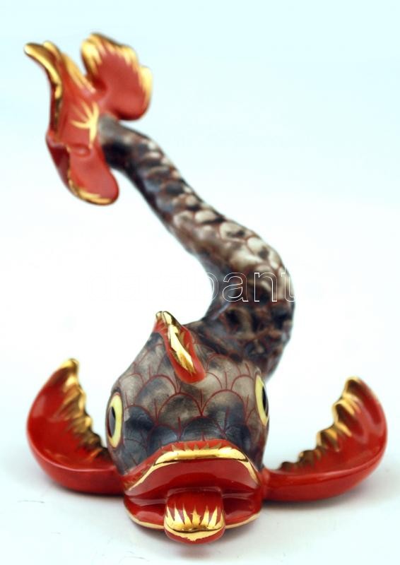 Beschreibung: Herendi pikkelymintás porcelán vörös-arany kínai halacska, kézzel festett, jelzett, hibátlan, m: 8 cm