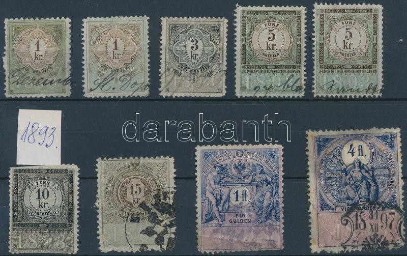 1893 9 db osztrák okmánybélyeg https://www.darabanth.com/de/240-Fernauktion/240.0/Andere-Sammelgebiete/Stempelmarken~20023/1893-9-db-osztrak-okmanybelyeg~II1118805