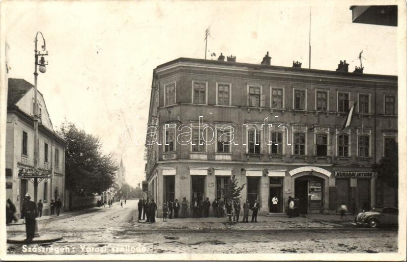Beschreibung: Szászrégen, Városi szálloda, Kunsági István üzlete / hotel, shop, automobile