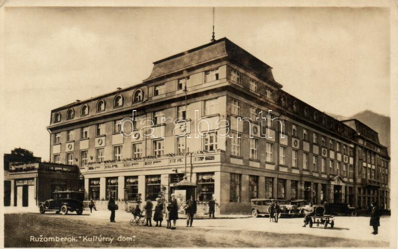 Rózsahegy, Ruzomberok; Kultúrház / cultural house, automobiles (EK) https://www.darabanth.com/de/240-Fernauktion/240.0/Ansichtskarten/Slowakei~9/Rozsahegy-Ruzomberok-Kulturhaz-cultural-house-automobiles-EK~II1113966