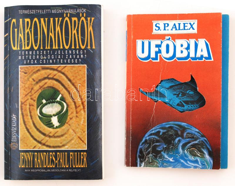 Alex, S. P.: Ufóbia. Ellenőrzés alatt a Föld? 222 esettanulmány. Bp., 1991, Zrínyi Kiadó. Papírkötésben, jó állapotban.; Randler, Jenny; Fuller, Paul: Gabonakörök. Természeti jelenség? Meteorológiai zavar? Ufók csínytevése? Bp., 1992, Édesvíz Kiadó. Papírkötésben, az első néhány lap kicsit vetemedett, egyébként jó állapotban.