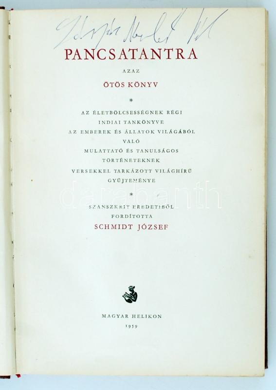 Pancsatantra, azaz ötös könyv. Ford.: Schmidt József. Bp., 1959, Magya... https://www.darabanth.com/de/241-Fernauktion/241.0/Andere-Sammelgebiete/Bucher-Sonstige-Raritaten~900042/Pancsatantra-azaz-otos-konyv-Ford-Schmidt-Jozsef-Bp-1959-Magyar-Helikon-Felvaszon-ko~II1128152
