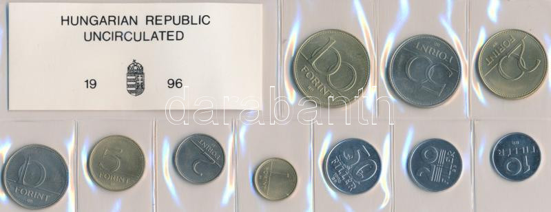 1996. 10f-100Ft 10klf db, forgalmi szett fóliatokban T:1 https://www.darabanth.com/de/241-Fernauktion/241.0/Numismatik/Ungarische-Munzen~8/1996-10f-100Ft-10klf-db-forgalmi-szett-foliatokban-T1~II1106052