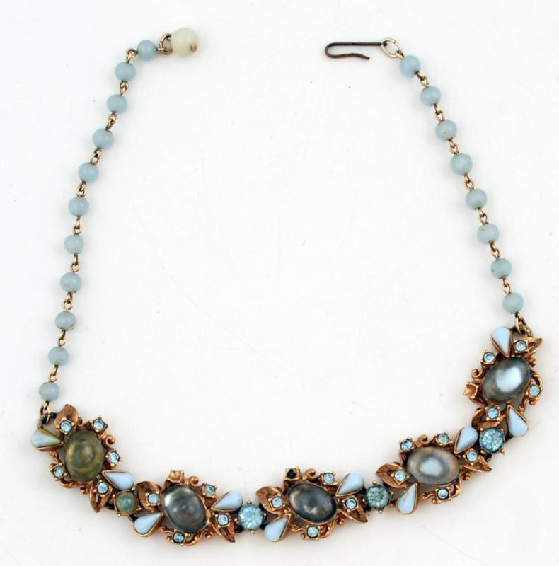 Antik bizsu nyaklánc, 3 db apró hiányzó kővel, h: 39 cm https://www.darabanth.com/de/242-Fernauktion/242.0/Andere-Sammelgebiete/Flohmarkt~200019/Antik-bizsu-nyaklanc-3-db-apro-hianyzo-kovel-h-39-cm~II1136800