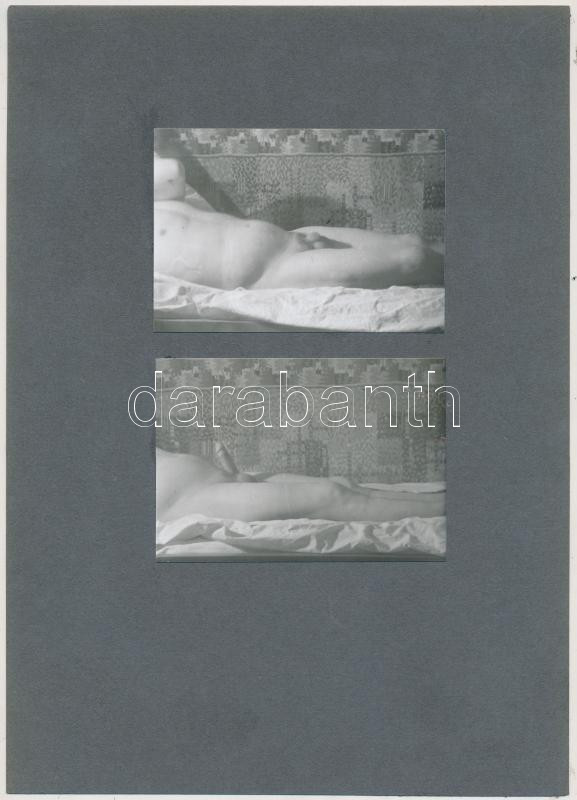 Beschreibung: Pornográf férfi akt, 2 db kartonra ragasztott fotó, 7x10 cm, karton 20x28 cm /