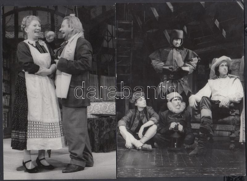 Vegyes, régi, színházi fotók, 15db (Vízkereszt, A padlás, A szabin nők elrablása) ebből 3 db Paál László fotója "Segítsd a királyt!" Két méretben: 14,5x10,5cm, 18x13cm