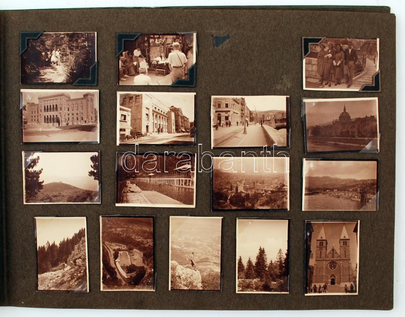 cca 1940-1950 Életképek Szarajevóból, fotóalbum, 45 képpel, 4,5x3,5 és 14x9 cm közötti méretekben /