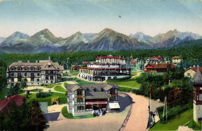Beschreibung: Ótátrafüred, Kertész Tódor vendéglője, kávéház / restaurant, cafe, mountains (EB)