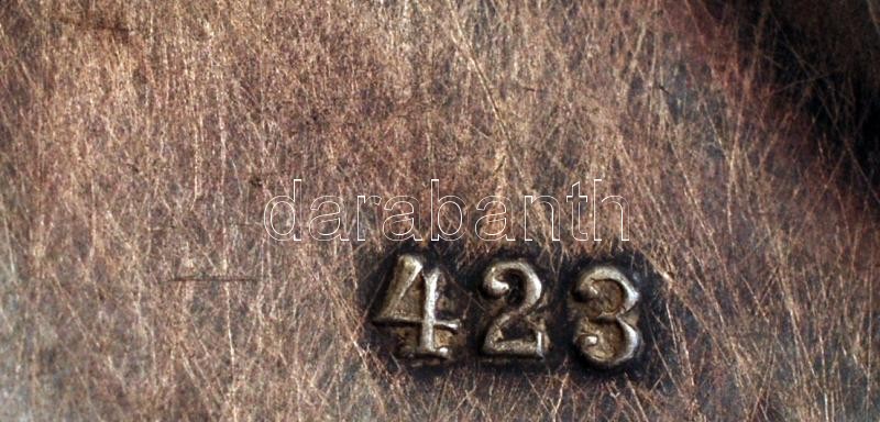 Beschreibung: Szecessziós vitorlás ón tálca, "Abbazia" felirattal, hibás, 20×13,5 cm