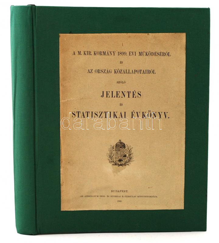Az m. kir. kormány 1899. évi működéséről és az ország közállapotairól szóló jelentés és statisztikai évkönyv. Bp., 1900. Athenaeum. Későbbi egészvászon kötésben, az eredeti címpal felhasználásával