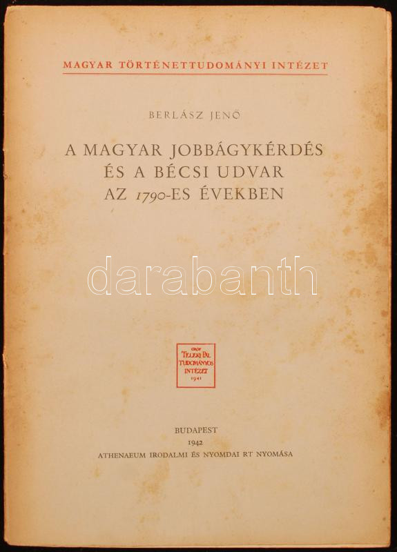 Berlász Jenő: A magyar jobbágykérdés és a bécsi udvar az 1790-es évekb... https://www.darabanth.com/de/243-Fernauktion/243.0/Andere-Sammelgebiete/Bucher-Geschichte~400017/Berlasz-Jeno-A-magyar-jobbagykerdes-es-a-becsi-udvar-az-1790-es-evekben-Budapest-1942-At~II1009755