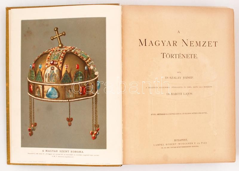 Dr.Szalay József- Dr.Baróti Lajos: A Magyar Nemzet Története I. köt: Magyarország az Árpád-ház kihaltáig. Bp., 1895, Lampel Róbert. Kiadói, festett, egészvászon kötésben