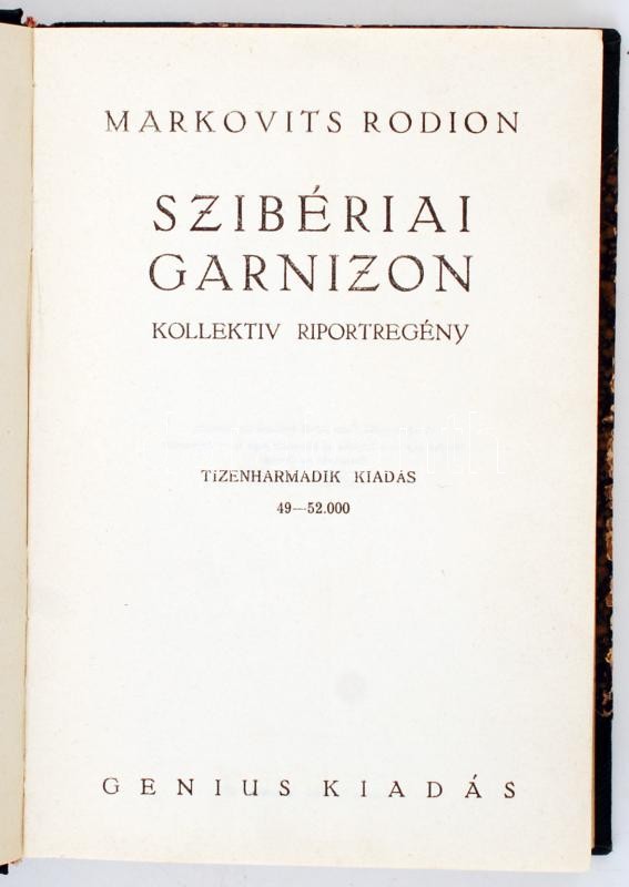 Markovits Rodion: Szibériai garnizon. Kollektív riportregény. [Bp.], [... https://www.darabanth.com/de/243-Fernauktion/243.0/Andere-Sammelgebiete/Bucher-Sonstige-Raritaten~400040/Markovits-Rodion-Sziberiai-garnizon-Kollektiv-riportregeny-Bp-1930-Genius-Kesobbi-fC3~II1141161