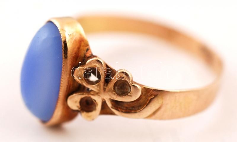 Arany (Au.) 14 K gyűrű szintetikus kővel, jelzett, bruttó: 2,4 g https://www.darabanth.com/de/243-Fernauktion/243.0/Andere-Sammelgebiete/Juwelen~400041/Arany-Au-14-K-gyuru-szintetikus-kovel-jelzett-brutto-2-4-g~II1144174