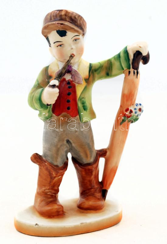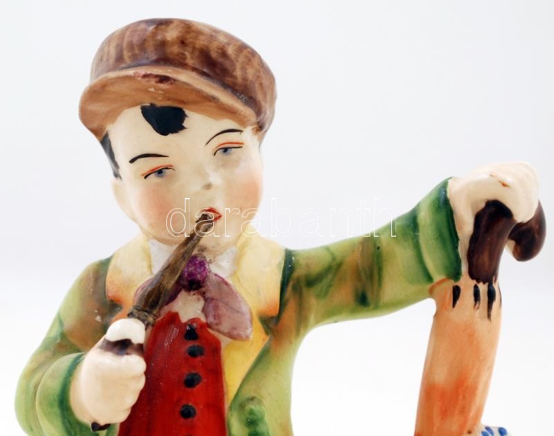 Beschreibung: Porcelán pipázó fiúcska, kézzel festett, jelzés nélkül,lepattanással, m:15cm,