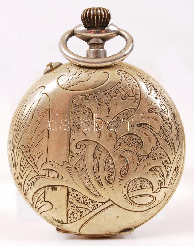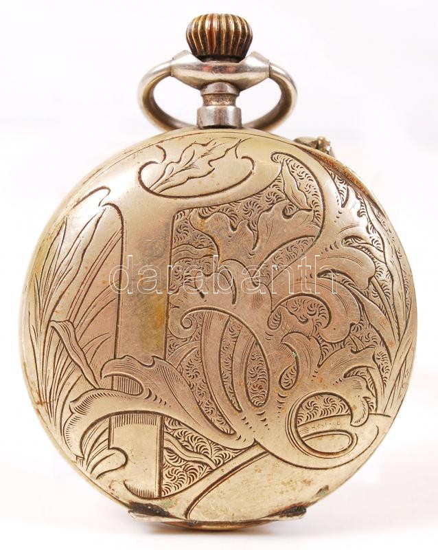 Beschreibung: cca 1910 System Roskopf Patent mechanikus stopperóra, szép szecessziós tokkal, üveg nélkül, működik, de javításra szorul / pocket timer with art nouveau case