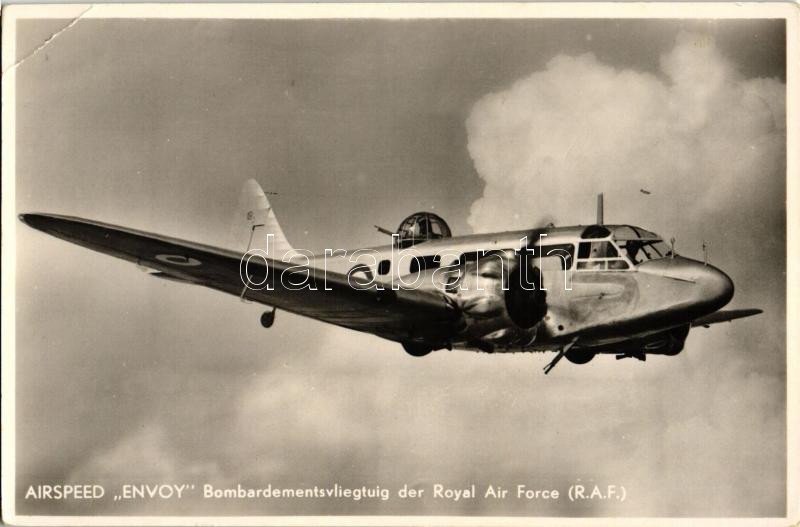 Airspeed 'Envoy' Bpmbardementsvliegtuig der Royal Air Force ... https://www.darabanth.com/de/243-Fernauktion/243.0/Ansichtskarten/Militarflugwesen~6000083/Airspeed-Envoy-Bpmbardementsvliegtuig-der-Royal-Air-Force-EB~II1082371