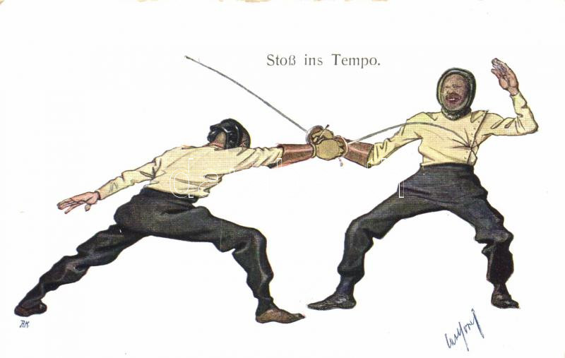 Stoss ins Tempo / Fencing, B.K.W.I. 266-6. s: Carl Josef https://www.darabanth.com/de/243-Fernauktion/243.0/Ansichtskarten/Sport~6000049/Stoss-ins-Tempo-Fencing-BKWI-266-6-s-Carl-Josef~II1148777