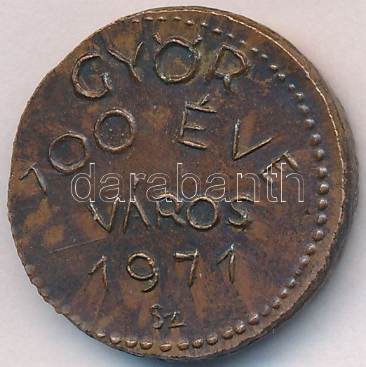 1971. "Győr 100 éve város" Br zseton Janus képével. Szign.: ... https://www.darabanth.com/de/243-Fernauktion/243.0/Numismatik/Ungarische-Edelmetall-Gedenkmunzen~9/1971-Gyor-100-eve-varos-Br-zseton-Janus-kepevel-Szign-Sz-21mm-T2~II1065787