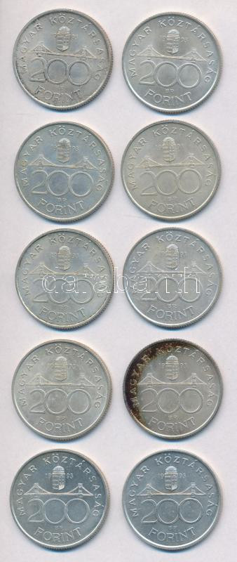 1993. 200Ft Ag "MNB" (10x) T:2,2- https://www.darabanth.com/de/243-Fernauktion/243.0/Numismatik/Ungarische-Munzen~8/1993-200Ft-Ag-MNB-10x-T2-2-~II1145159