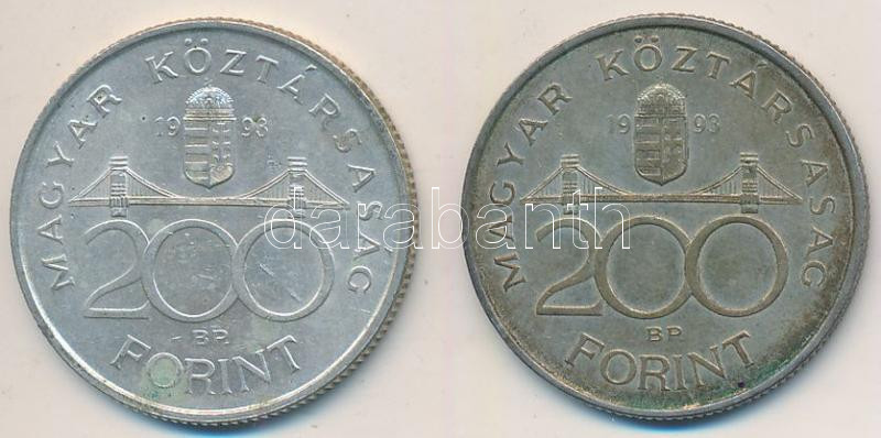 1993. 200Ft Ag "MNB" (2x) T:2,2- https://www.darabanth.com/de/243-Fernauktion/243.0/Numismatik/Ungarische-Munzen~8/1993-200Ft-Ag-MNB-2x-T2-2-~II1142856