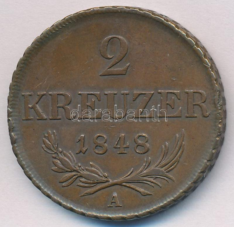 KM# 2188 https://www.darabanth.com/de/243-Fernauktion/243.0/Numismatik/Weltweit-Munzen~12/Ausztria-1848A-2Kr-Cu-T2--Austria-1848A-2-Kreuzer-Cu-CXF--KM23-2188~II1139771