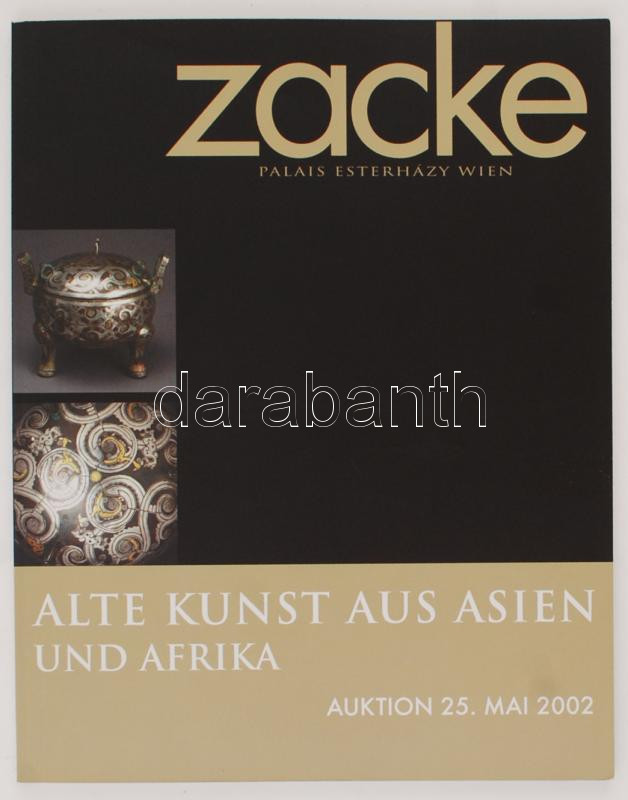 Alte Kunst aus Asien und Afrika. Zacke Auktionen & Galerie GmbH (Palais Esterházy, Wien), Auktion 25. Mai 2002. Német nyelven, papírkötésben, jó állapotban.