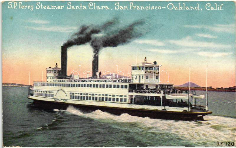 SD Ferry steamer Santa Clara, San Francisco-Oakland https://www.darabanth.com/de/245-Fernauktion/245.0/Ansichtskarten/Schiffe~400060/SD-Ferry-steamer-Santa-Clara-San-Francisco-Oakland~II1026291