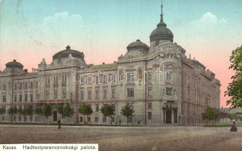 Kassa, Hadtestparancsnoksági palota / military office https://www.darabanth.com/de/245-Fernauktion/245.0/Ansichtskarten/Slowakei~400021/Kassa-Hadtestparancsnoksagi-palota-military-office~II1064253