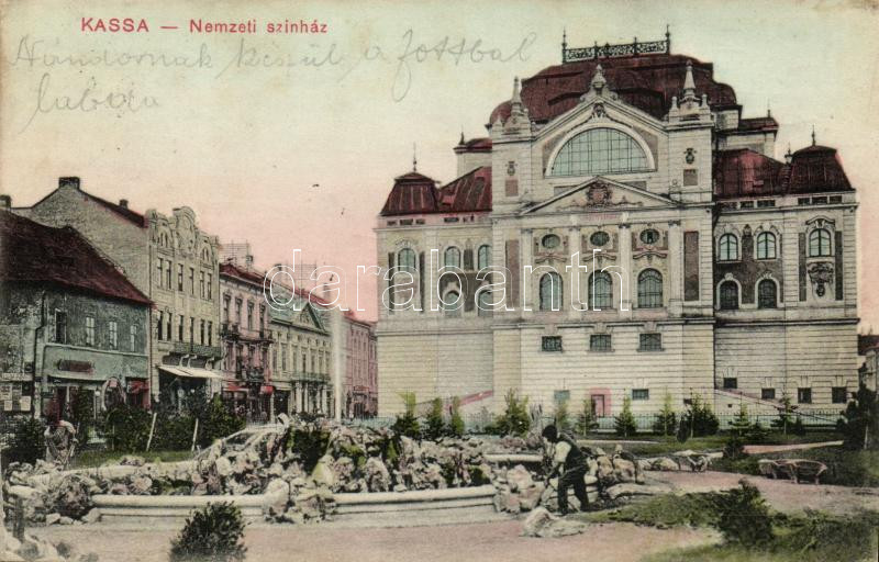 Kassa, Nemzeti színház, Takarékegylet / theatre, bank (EK) https://www.darabanth.com/de/245-Fernauktion/245.0/Ansichtskarten/Slowakei~400021/Kassa-Nemzeti-szinhaz-Takarekegylet-theatre-bank-EK~II1093086