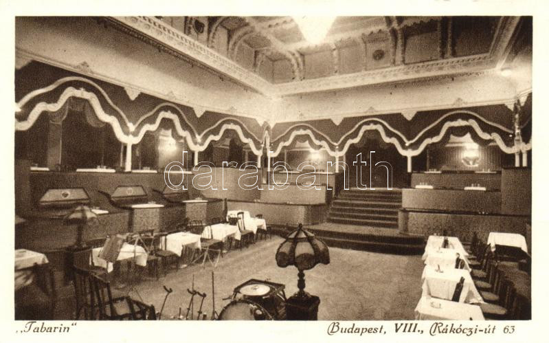 Budapest VIII. Tabarin bár, Rákóczi út 63. https://www.darabanth.com/de/245-Fernauktion/245.0/Ansichtskarten/Ungarn~400016/Budapest-VIII-Tabarin-bar-Rakoczi-ut-63~II1032247