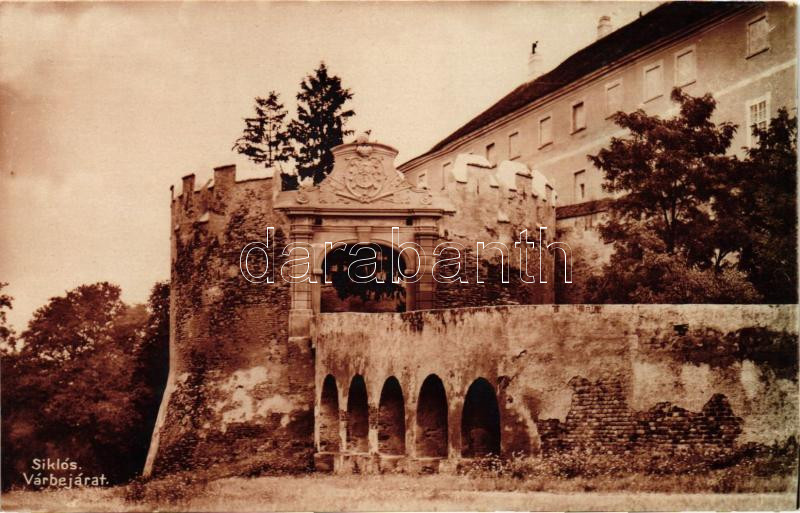 Siklós, Várbejárat (ragasztónyom / gluemark) https://www.darabanth.com/de/245-Fernauktion/245.0/Ansichtskarten/Ungarn~400016/Siklos-Varbejarat-ragasztonyom-gluemark~II1034073
