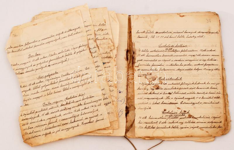 cca 1940 Receptgyűjtemény kézirat, min. 200 db sütemény ill., torta re... https://www.darabanth.com/de/246-Fernauktion/246.0/Andere-Sammelgebiete/Bucher-Kuche-und-Garten~1000011/cca-1940-Receptgyujtemeny-kezirat-min-200-db-sutemeny-ill-torta-recept-viseltes-allapotba~II1166894